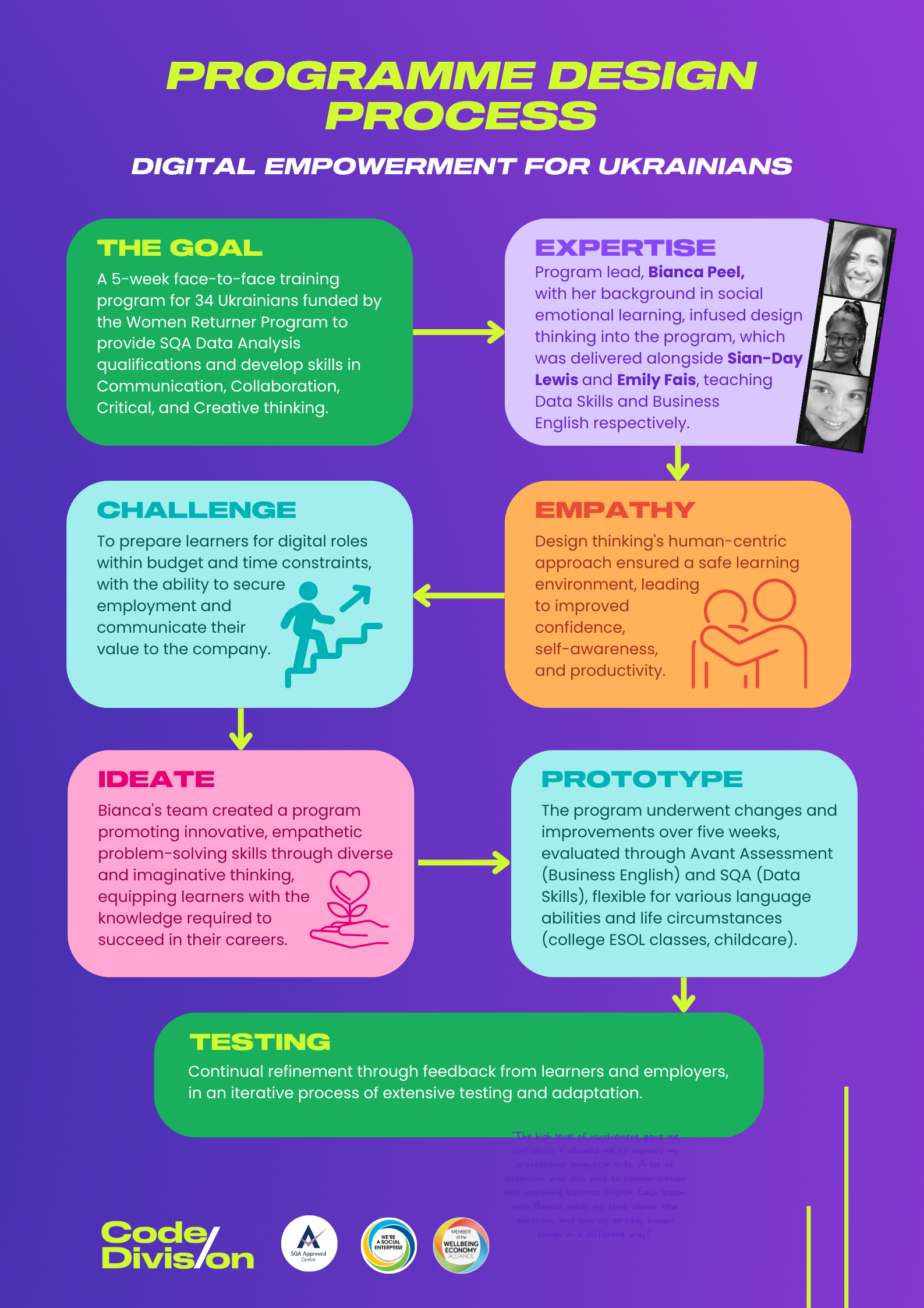 Using a combination of design thinking, holistic and trauma informed appraches we designed Scotland’s FIRST holistic digital skills programme supporting displaced Ukrainian Refugees.